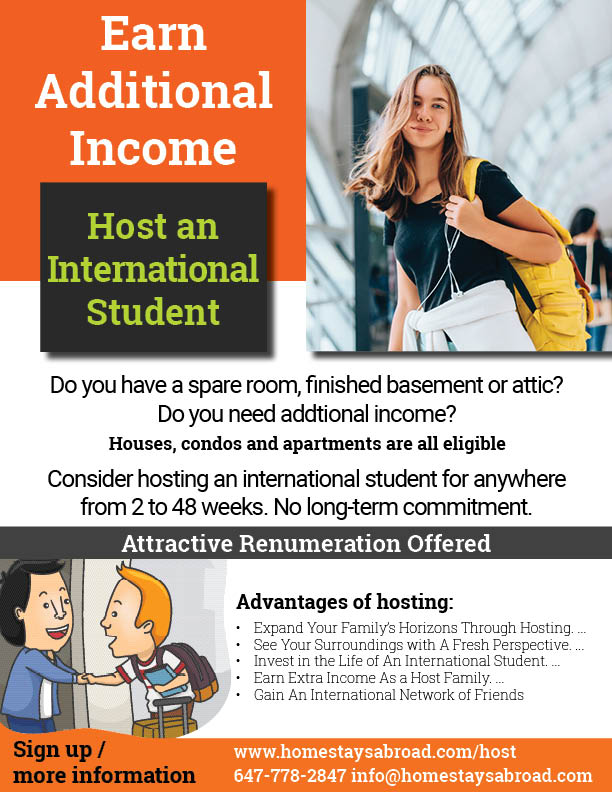 Hosting a foreign student has many advantages. It opens your home and your mind to the world, to new experiences and new friendships. At the same time though hosting a student carries certain important responsibilities, such as regular cleaning and cooking and providing a welcoming home environment for your student.