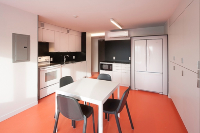 - On each floor, there are 5 (male/female segregated) suites. Each suite has 6 bedrooms, 3 shared washrooms and a kitchen/common area. In the kitchen/common area, each resident has his/her own pantry and access to a refrigerator.